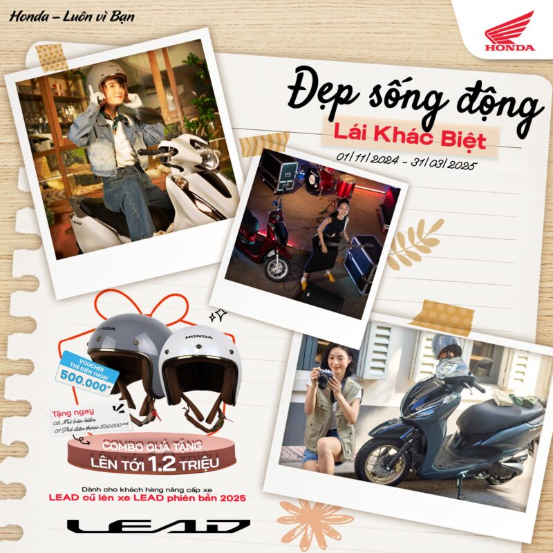 😘 Đặc quyền dành cho các nàng mê LEAD vẫn đang tiếp tục! Khám phá chương trình ưu đãi “Đẹp sống động – Lái khác biệt” đang diễn ra cho đến 31/03/2025, bắt ngay cơ hội nhận quà xịn sò khi “lên đời” xe LEAD mới nàng nhé.