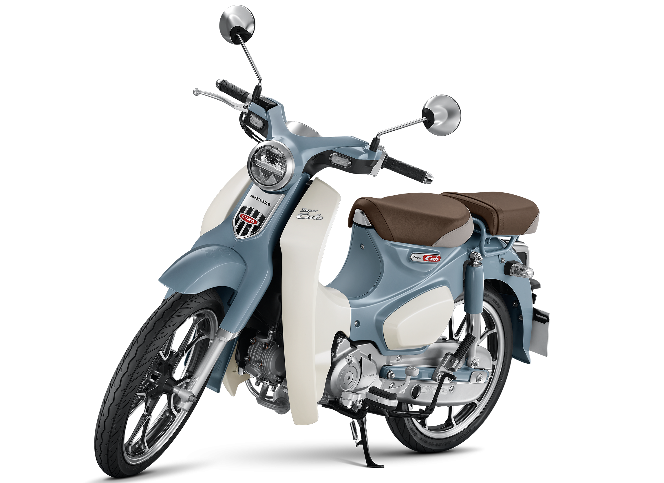 Thiết kế hình chữ S kế thừa kiểu dáng huyền thoại của xe Super Cub thập niên 50, mang đến sự hài hòa và mềm mại. Lớp sơn nhũ ánh kim kết hợp với các chi tiết mạ crôm tinh tế gợi lên nét đẹp cổ điển, pha lẫn sự sang trọng, cao cấp, đặc trưng của dòng xe Super Cub